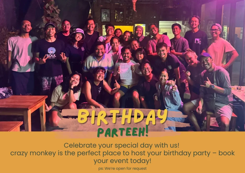 The island’s food scene can be a bit of a letdown—endless menus of uninspired Western dishes. So we went a little crazy and decided to do something about it. Crazy Monkey Penida is your escape from the bland. We’re dedicated to serving up the kind of bold, spicy, and satisfying Indonesian food that locals love. But we’re more than just a place to eat; we’re a hub for the community. We’re building a space where you can unwind and embrace the spirit of “nongkrong”—the Indonesian way of just chilling out and enjoying life with friends.